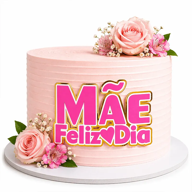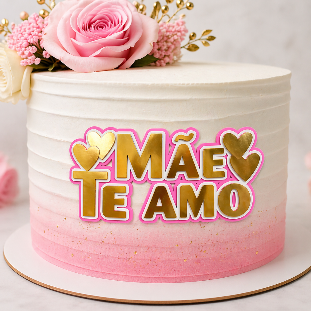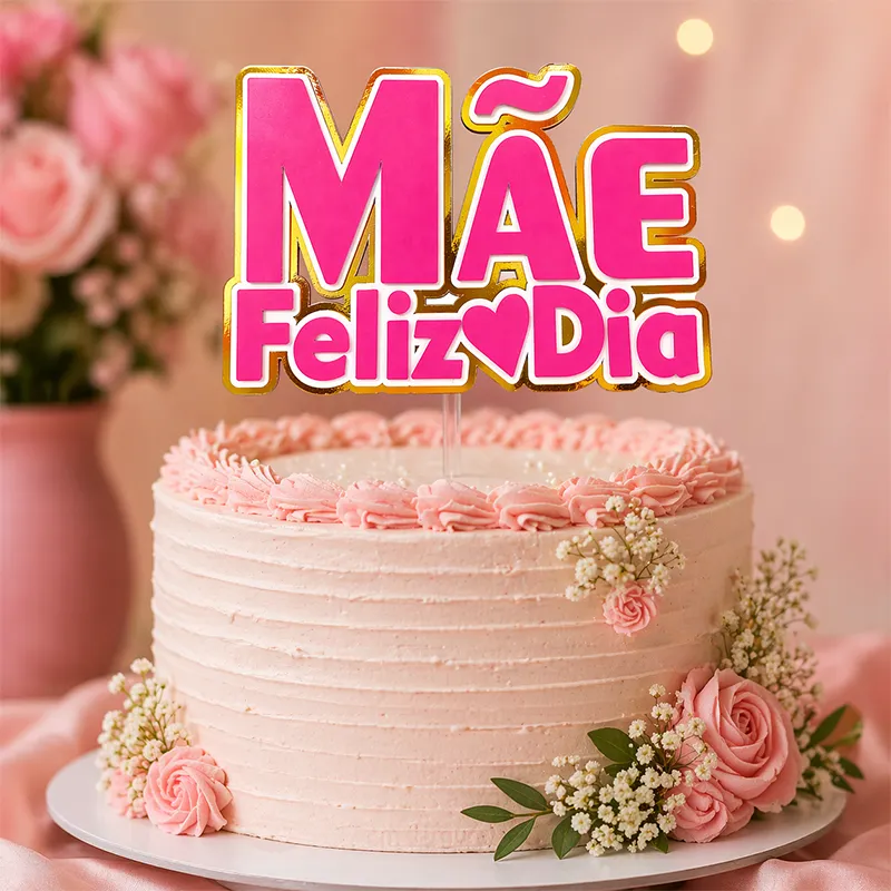 O topo de bolo mãe feliz dia é a escolha ideal para transformar qualquer bolo em uma homenagem especial. Com um design moderno em rosa vibrante e detalhes dourados, esse topper transmite delicadeza, amor e sofisticação em cada detalhe.